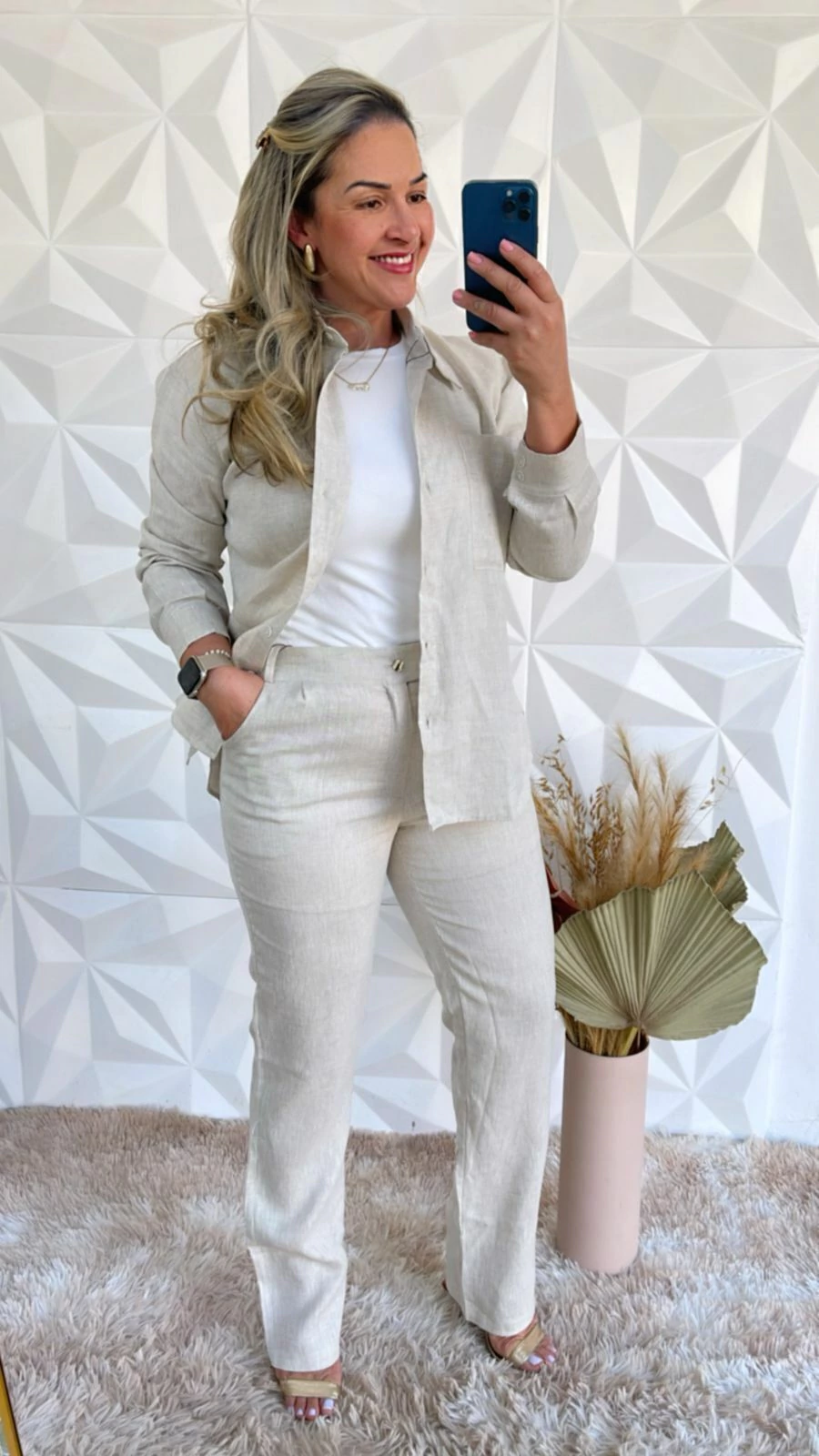 💎 Destaques do Produto: - 100% Linho: Material nobre, natural e sustentável, ideal para climas quentes. - Modelagem Sofisticada: Caimento impecável que valoriza a silhueta com elegância. - Versatilidade: Combine com blusas básicas ou peças mais elaboradas para um look que vai do casual ao chic.