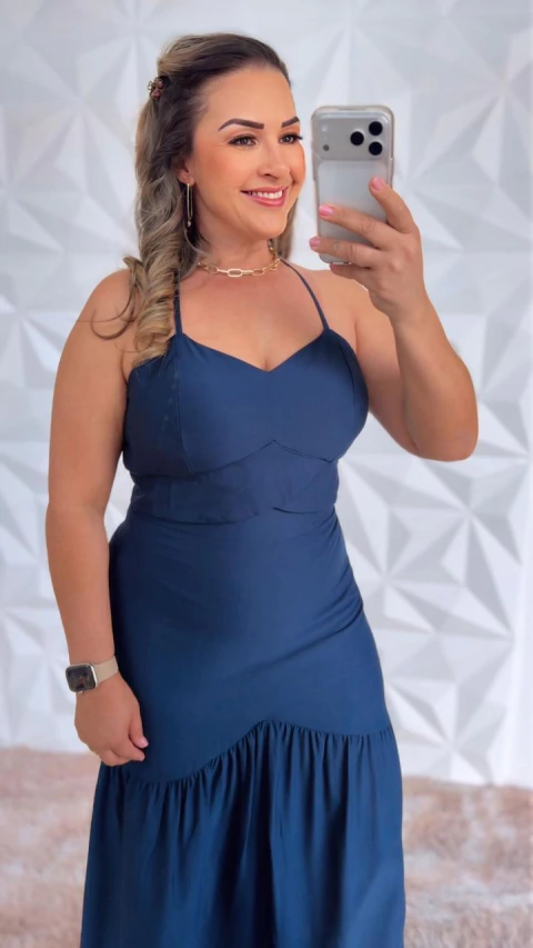 📏 Nossa modelo mede: busto 106 cm, cintura 91 cm, quadril 112 cm e 1,75 m de altura, mostrando como o conjunto valoriza todas as curvas.