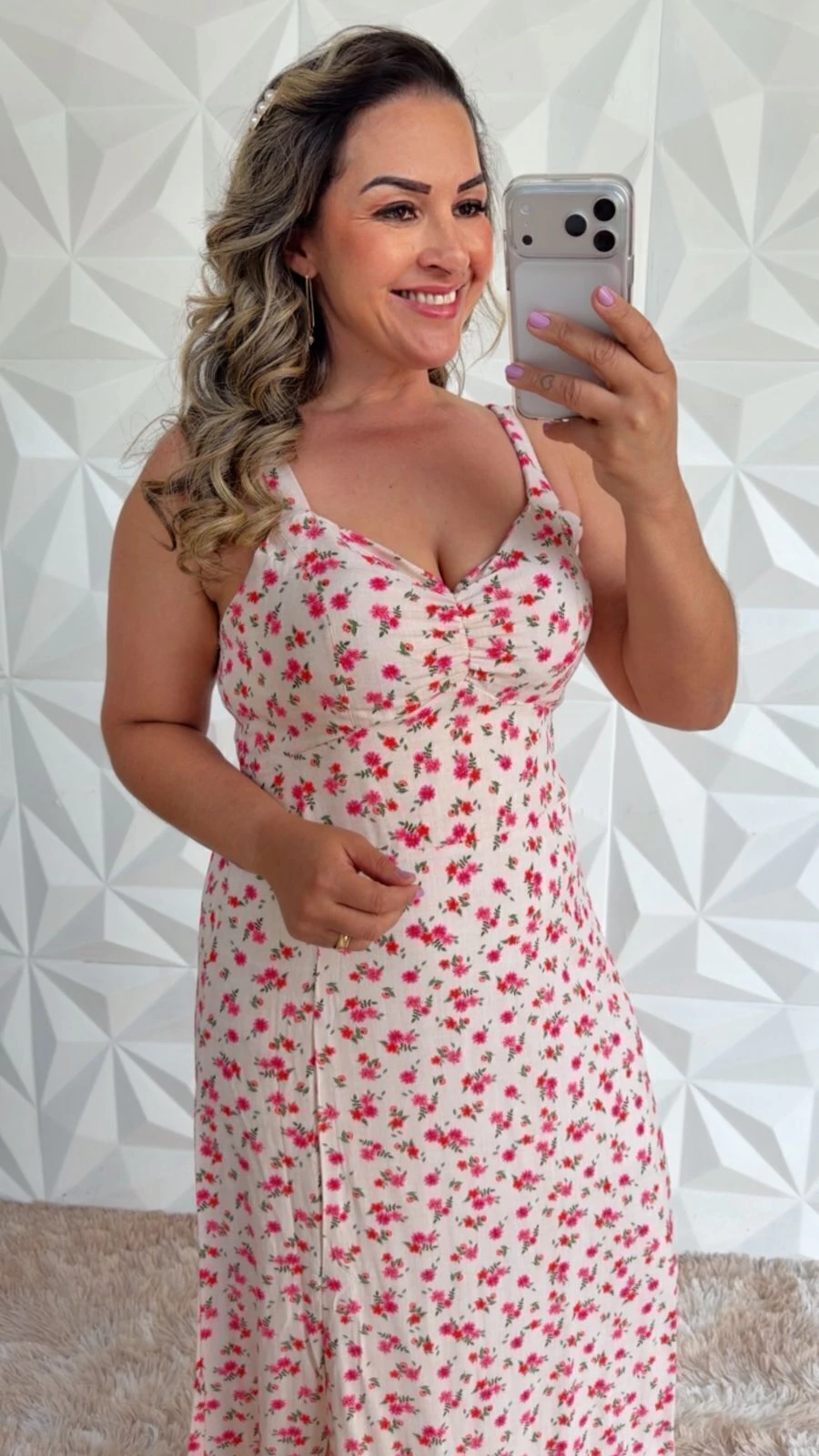 Feito de viscose de alta qualidade e todo forrado, o Vestido Alice-Rosa traz um caimento perfeito e toque suave. Com lastex nas costas, garante ajuste ideal para tamanhos M a G, valorizando suas curvas com charme. Nossa modelo (busto 106 cm, cintura 91 cm, quadril 112 cm, 1,75 m) veste com naturalidade e estilo.